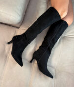 Botas altas de ante negro. El tacón mide 6,5 cm.