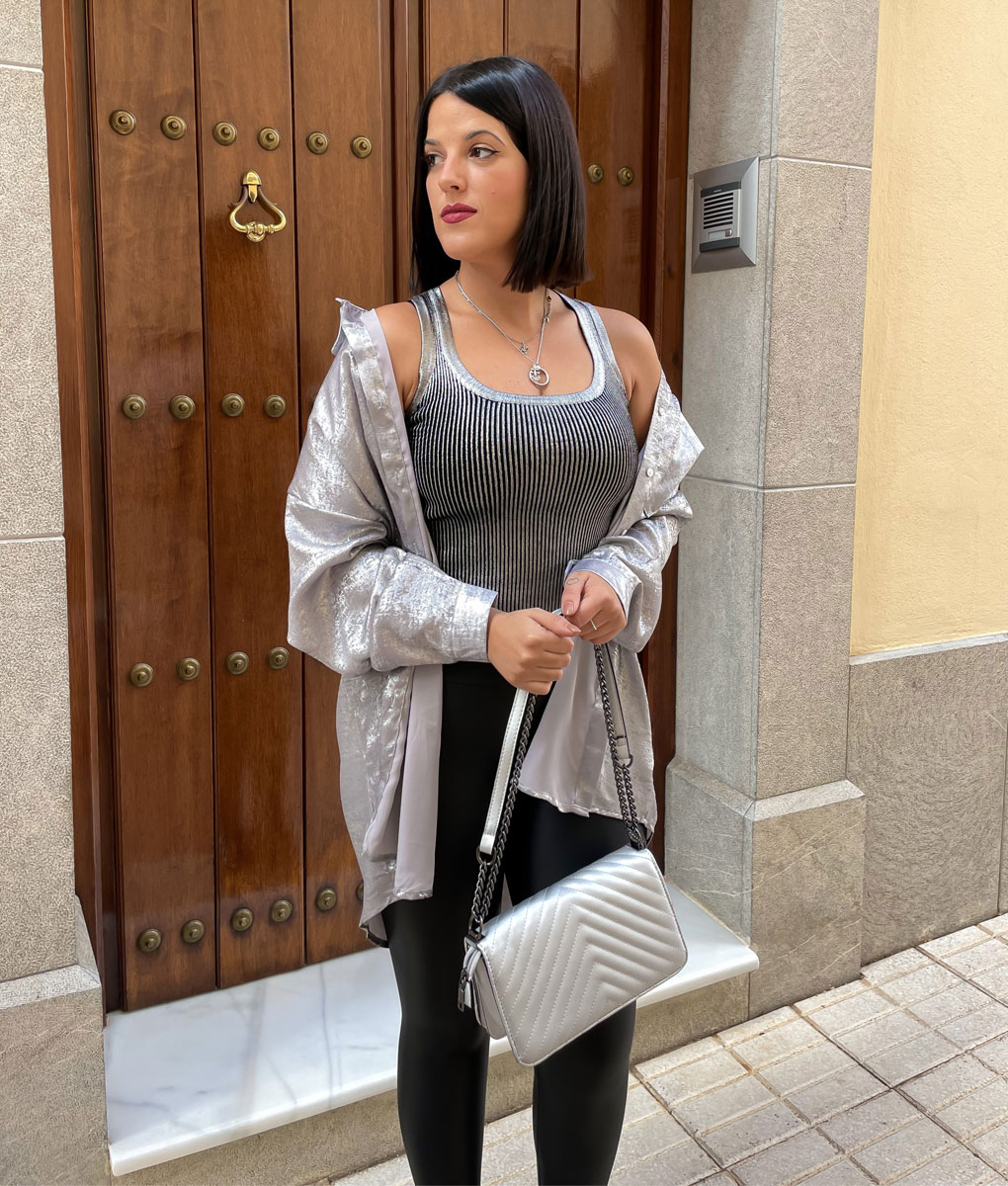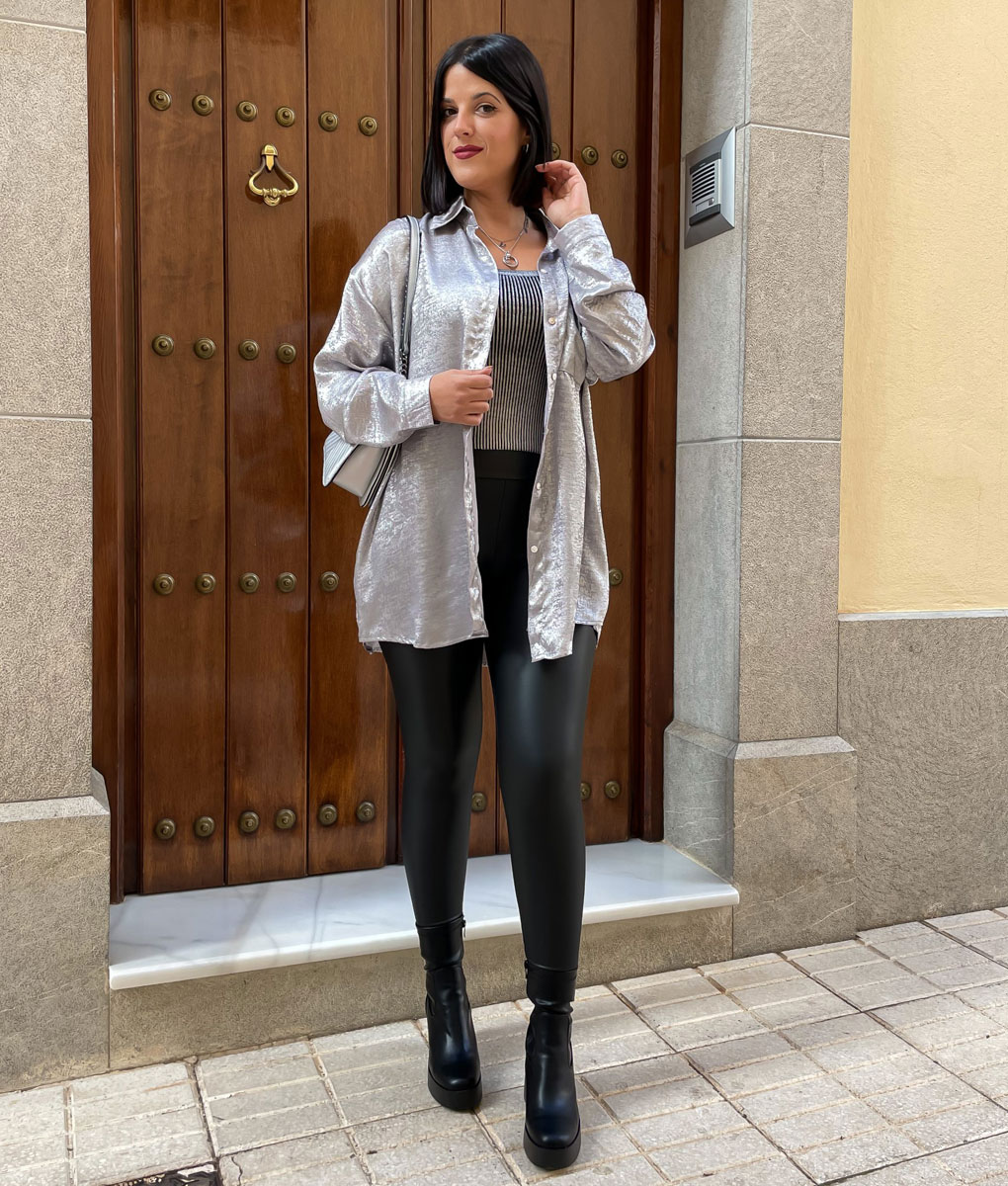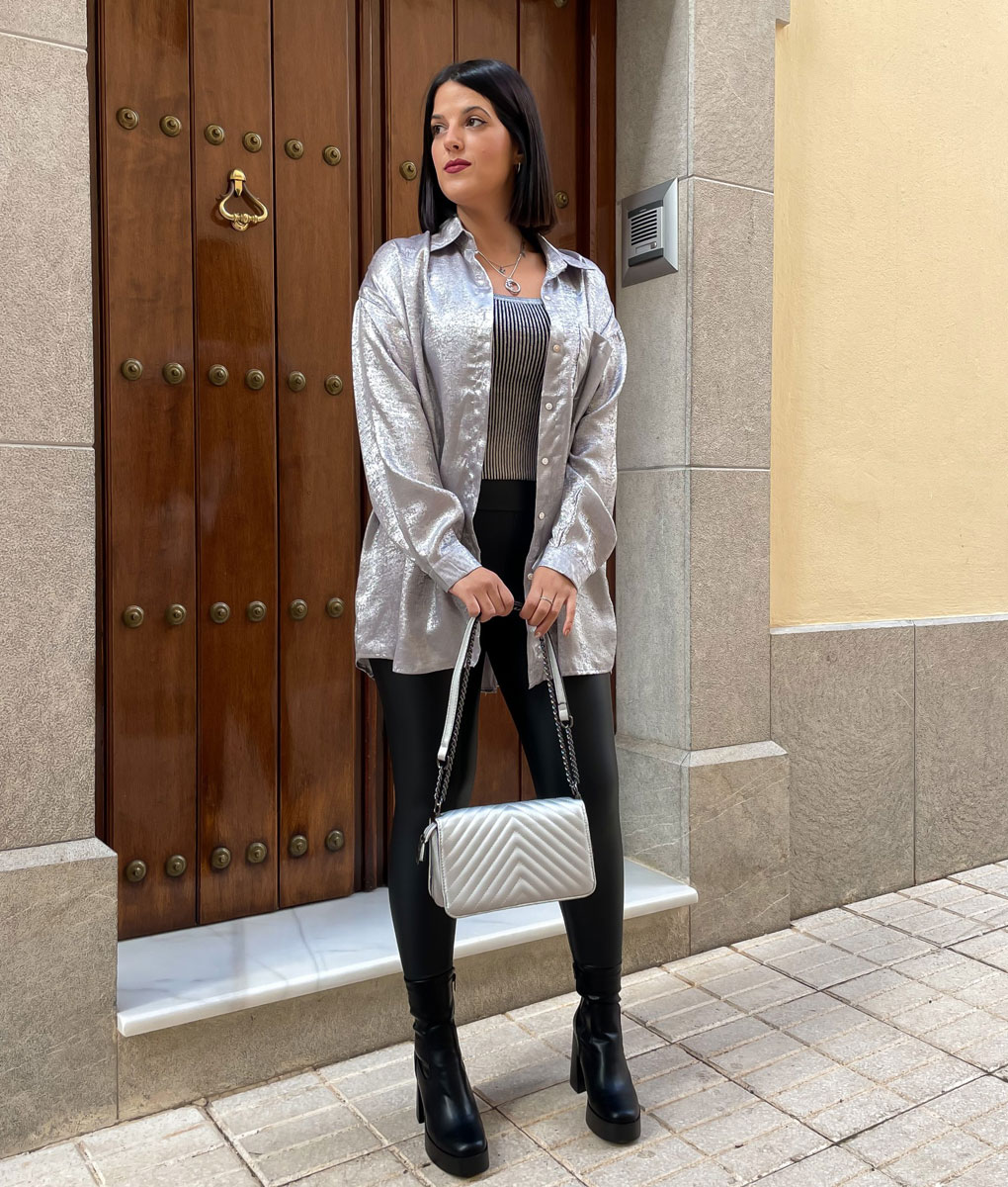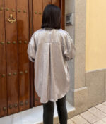 Etiquetas: blusa plateada, camisa, camisa oversize, camisa plateada