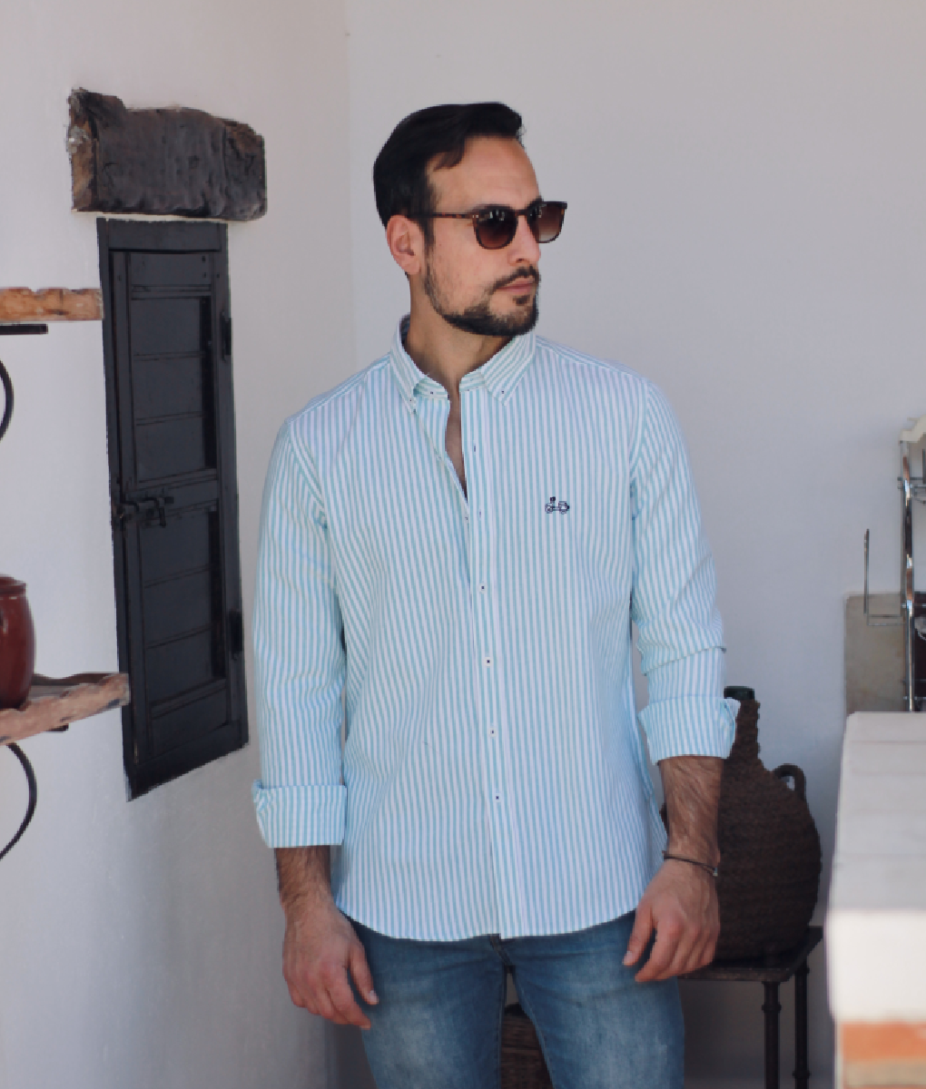 Camisa oxford rayas verde agua Coolbike