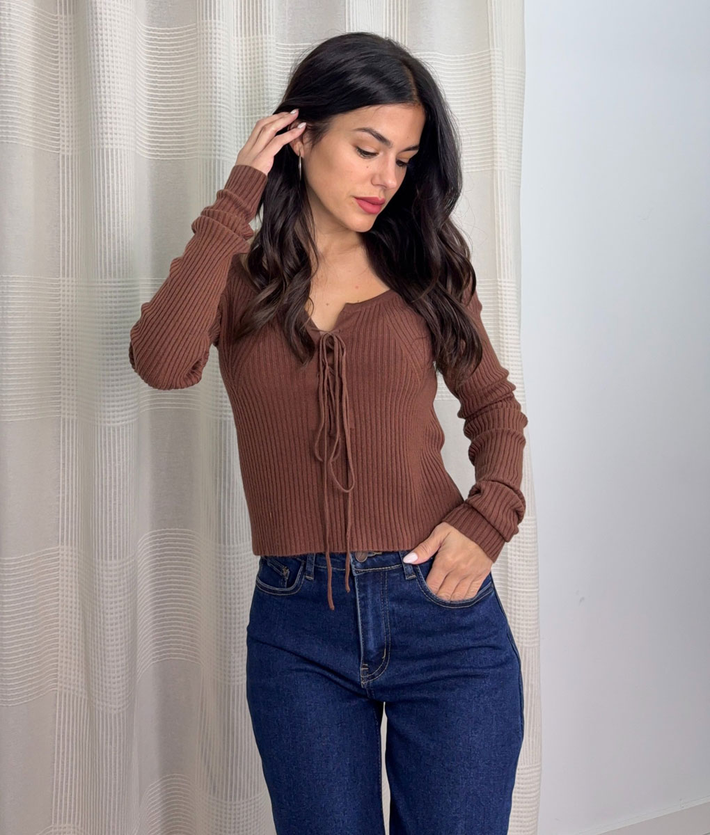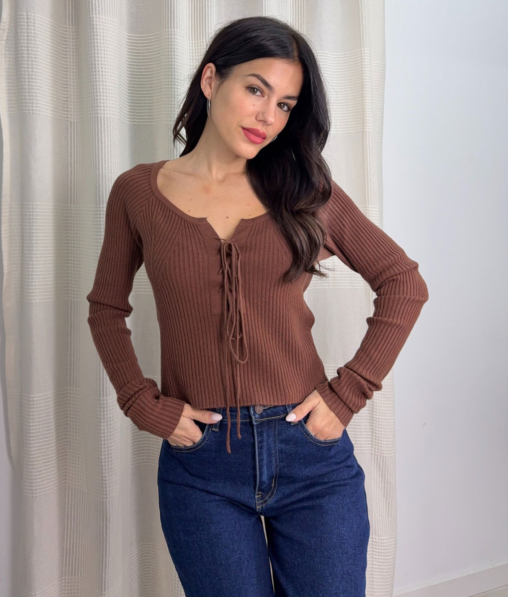 Top punto escote cordón