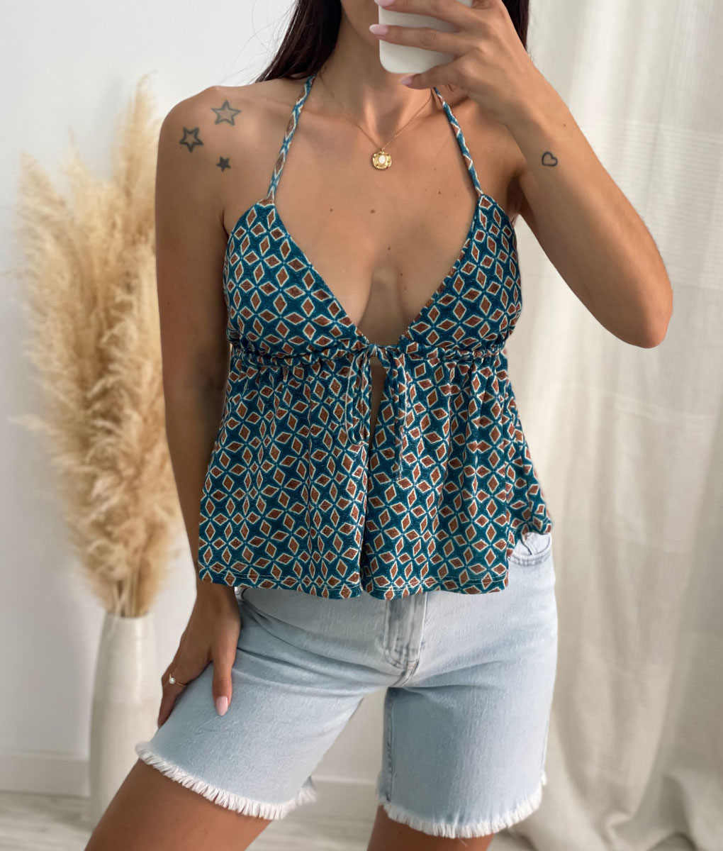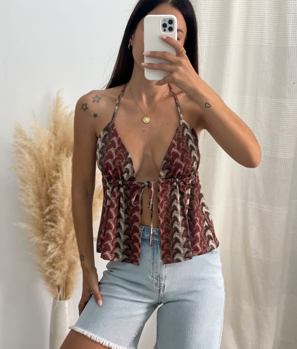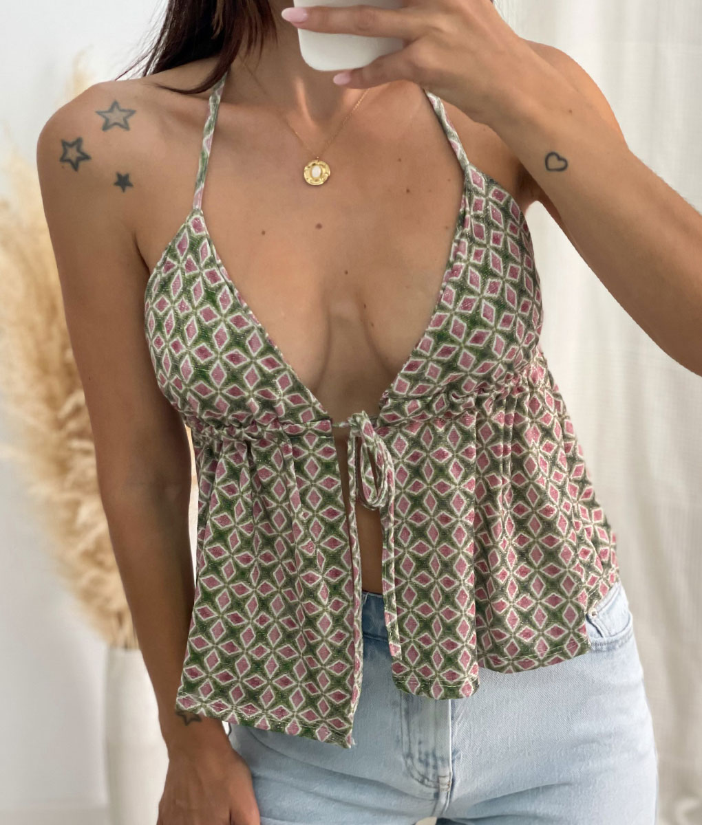 SKU: N/D Categorías: Blusas y tops Casual, Casual, Moda Mujer, REBAJAS Etiquetas: top, top brillo, top estampado, top summer