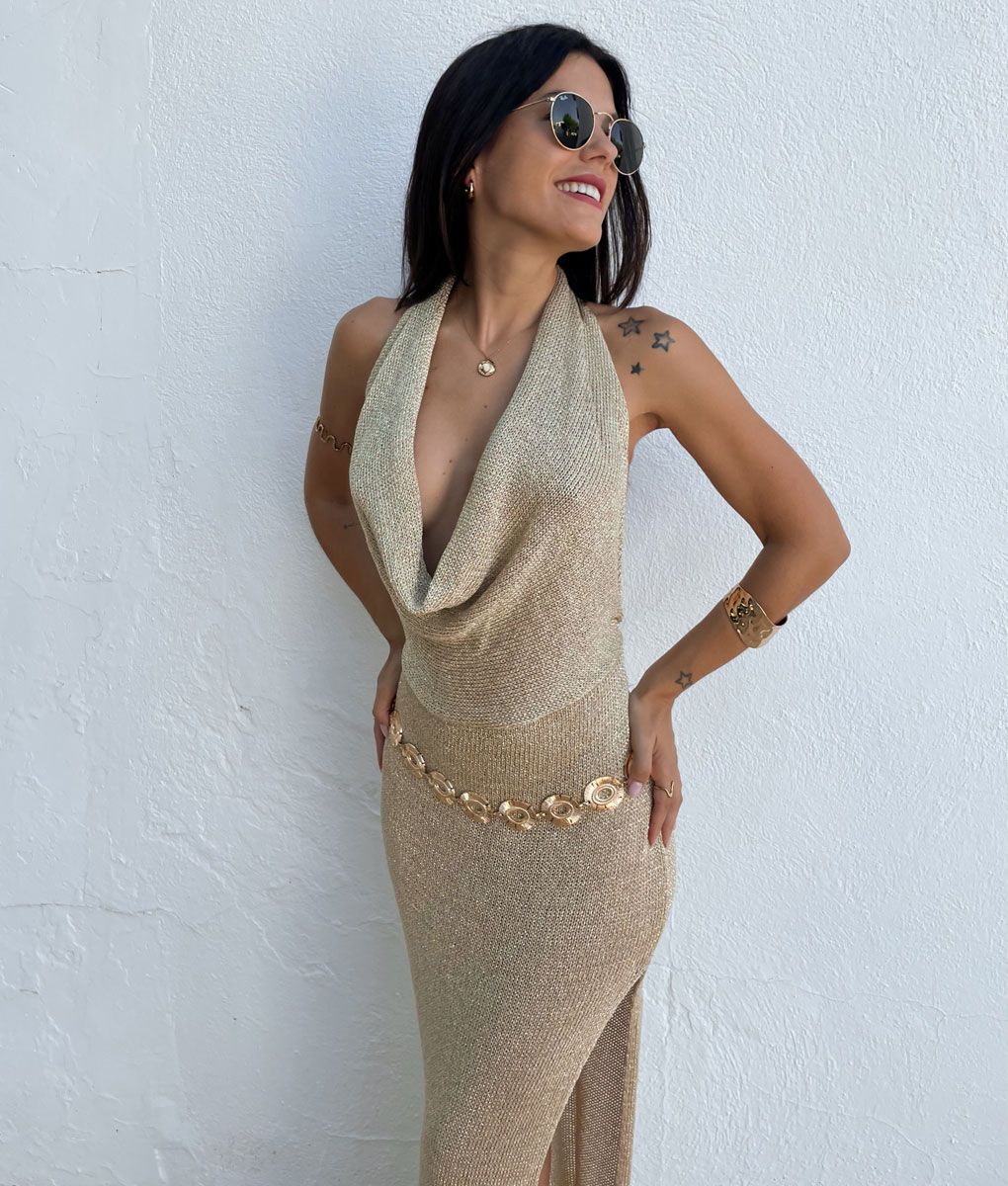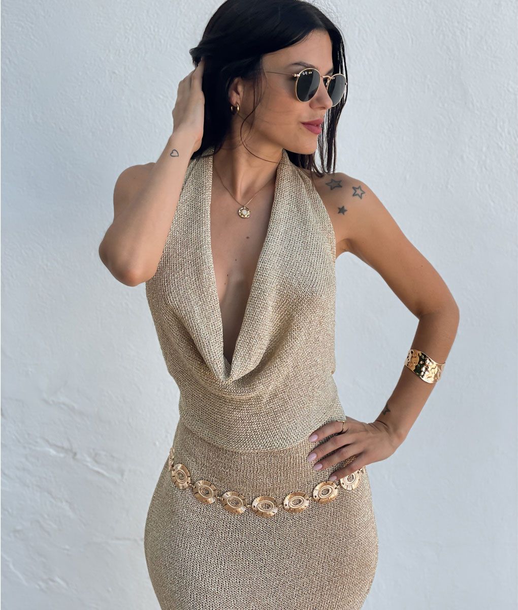 Etiquetas: vestido, vestido bari, vestido blanco, vestido dorado, vestido punto