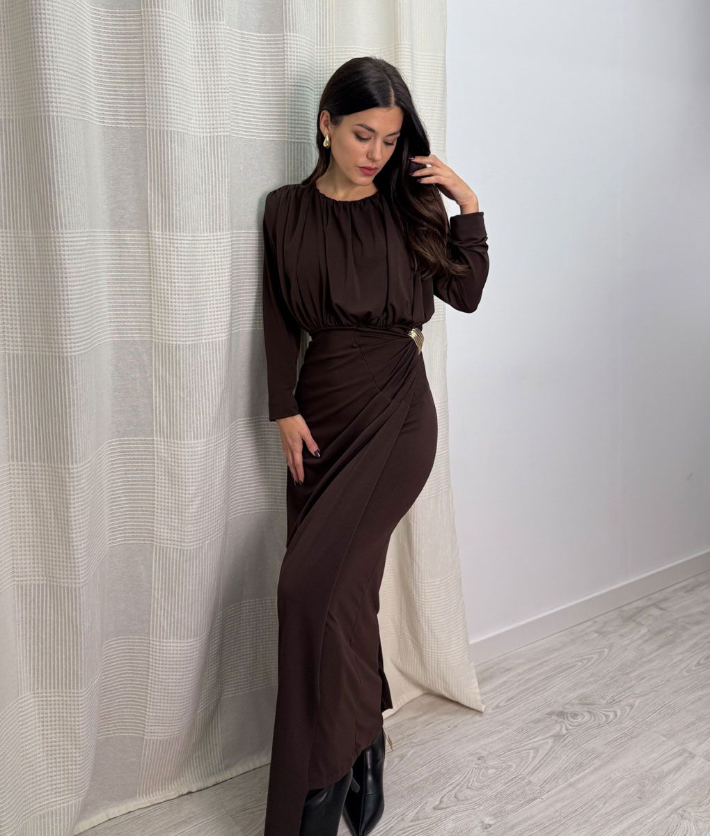 Etiquetas: vestido, vestido frunce, vestido marron, vestido negro