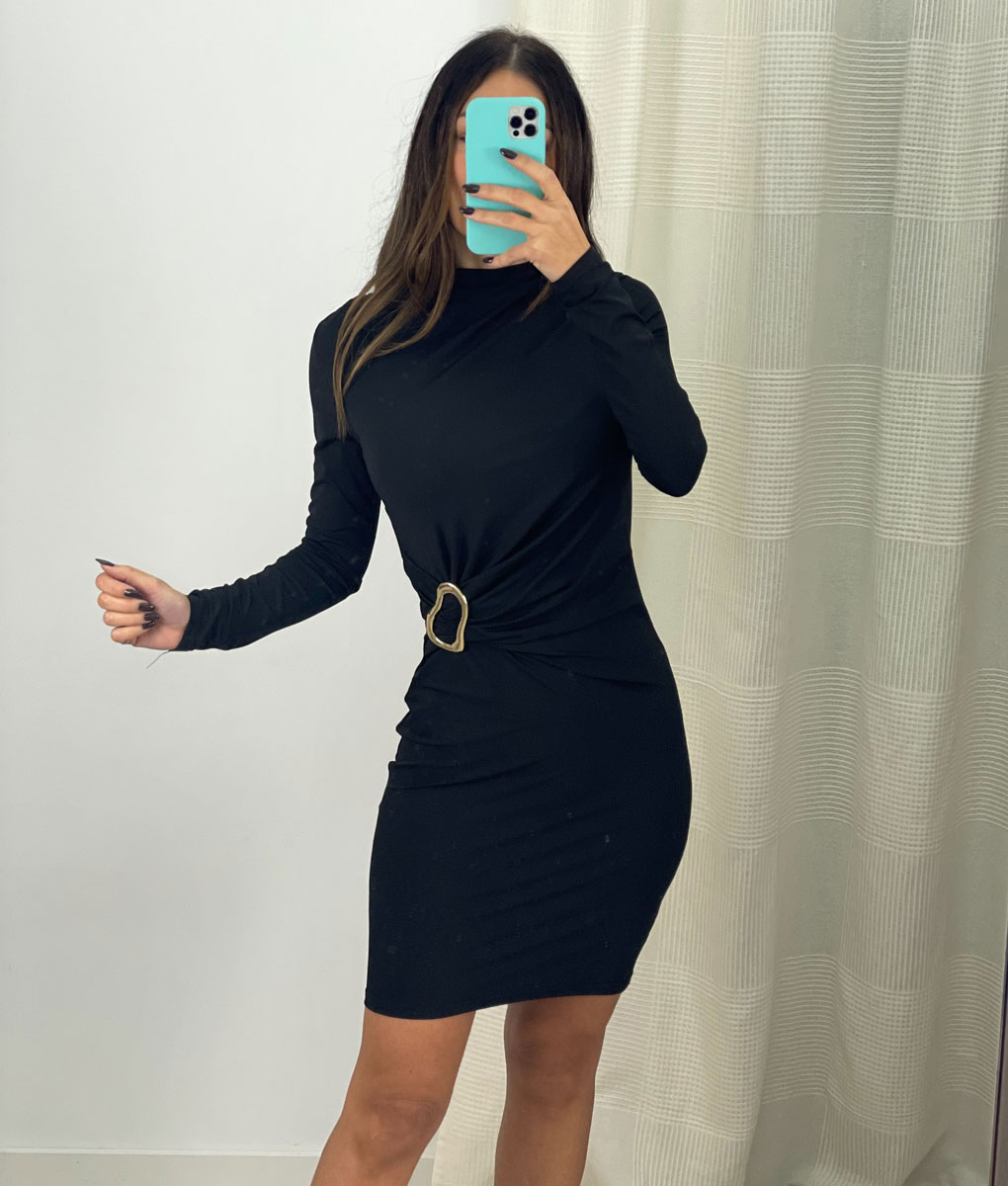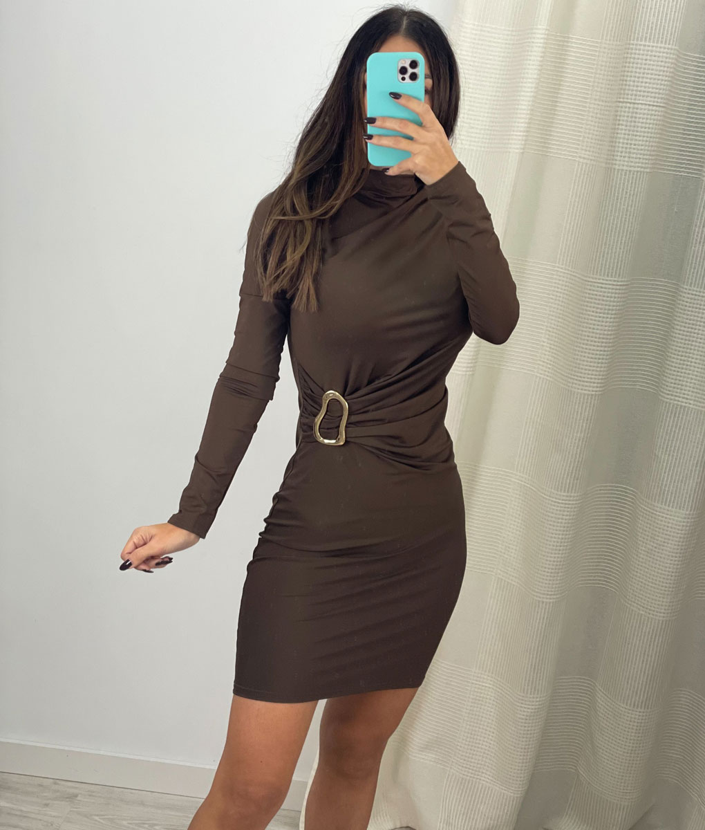 Etiquetas: vestido, vestido frunce, vestido hebilla, vestido marron, vestido negro