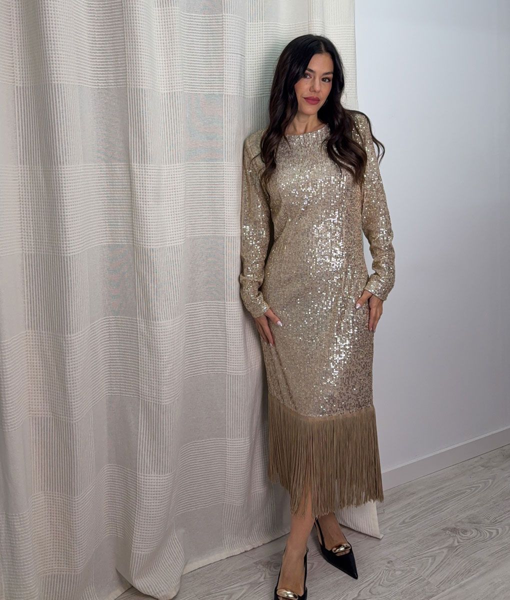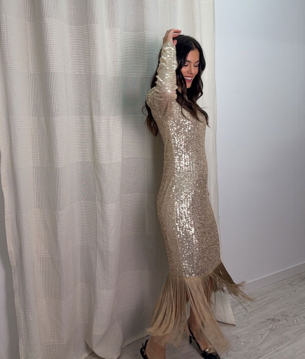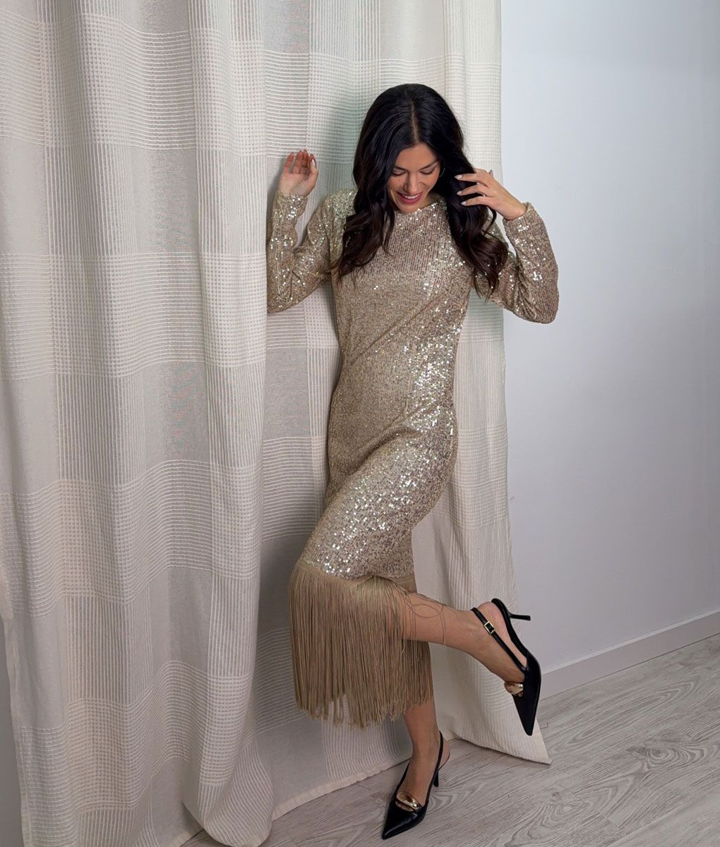 Etiquetas: vestido, vestido dorado, vestido flecos, vestido lentejuelas