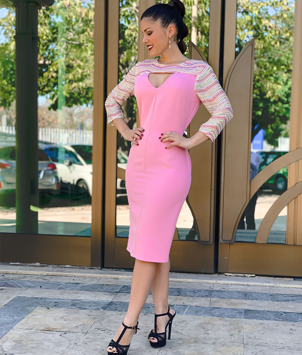 SKU: N/D Categorías: Moda Mujer, Vestidos Cortos Etiquetas: vestido lentejuelas, vestido rosa, vestido tania