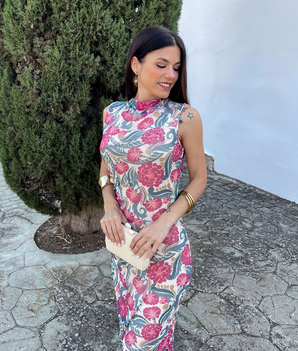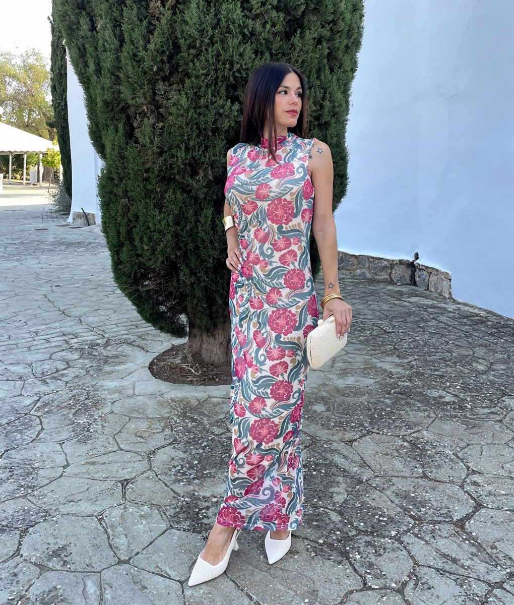Vestido tul midi flores